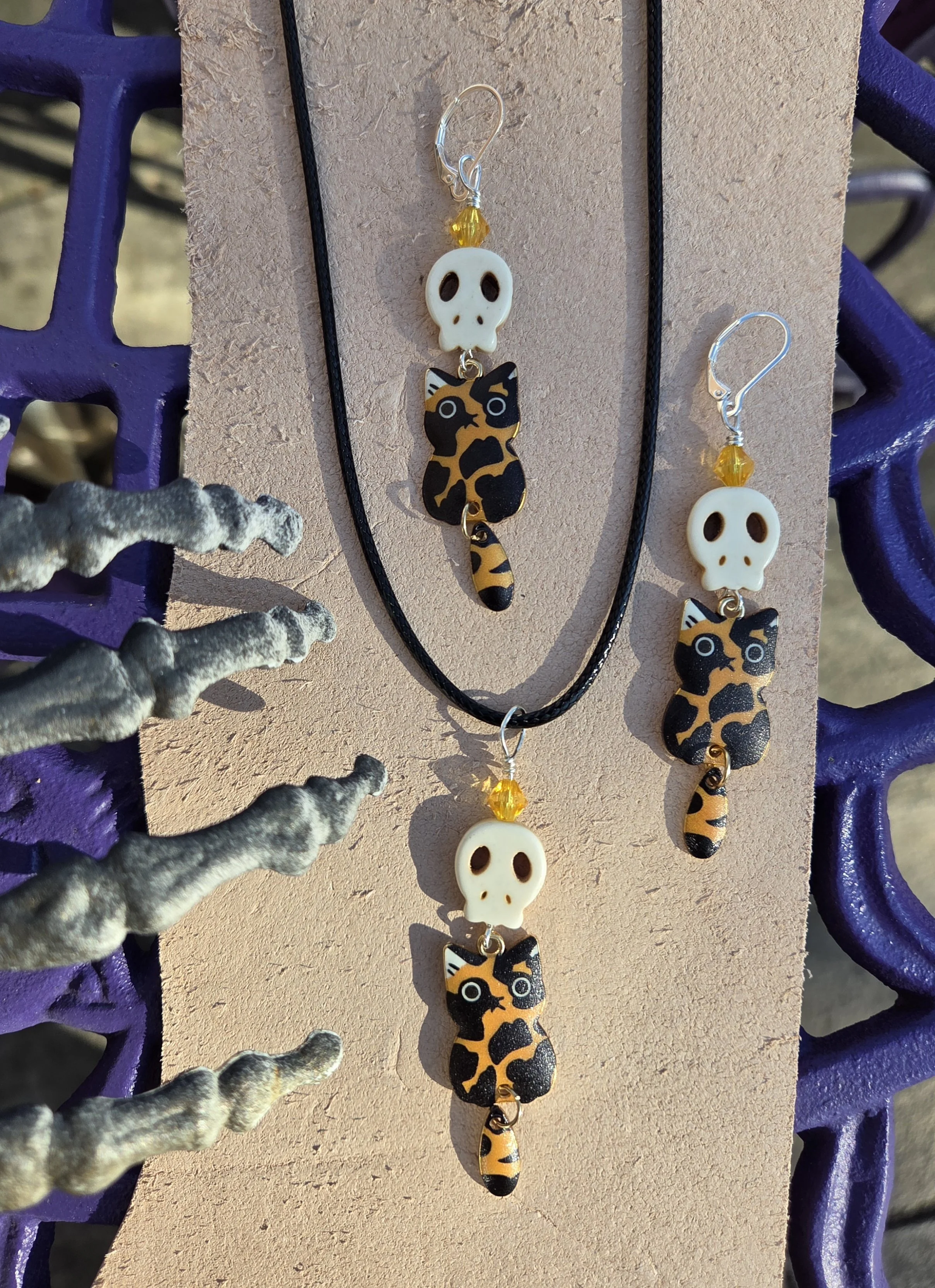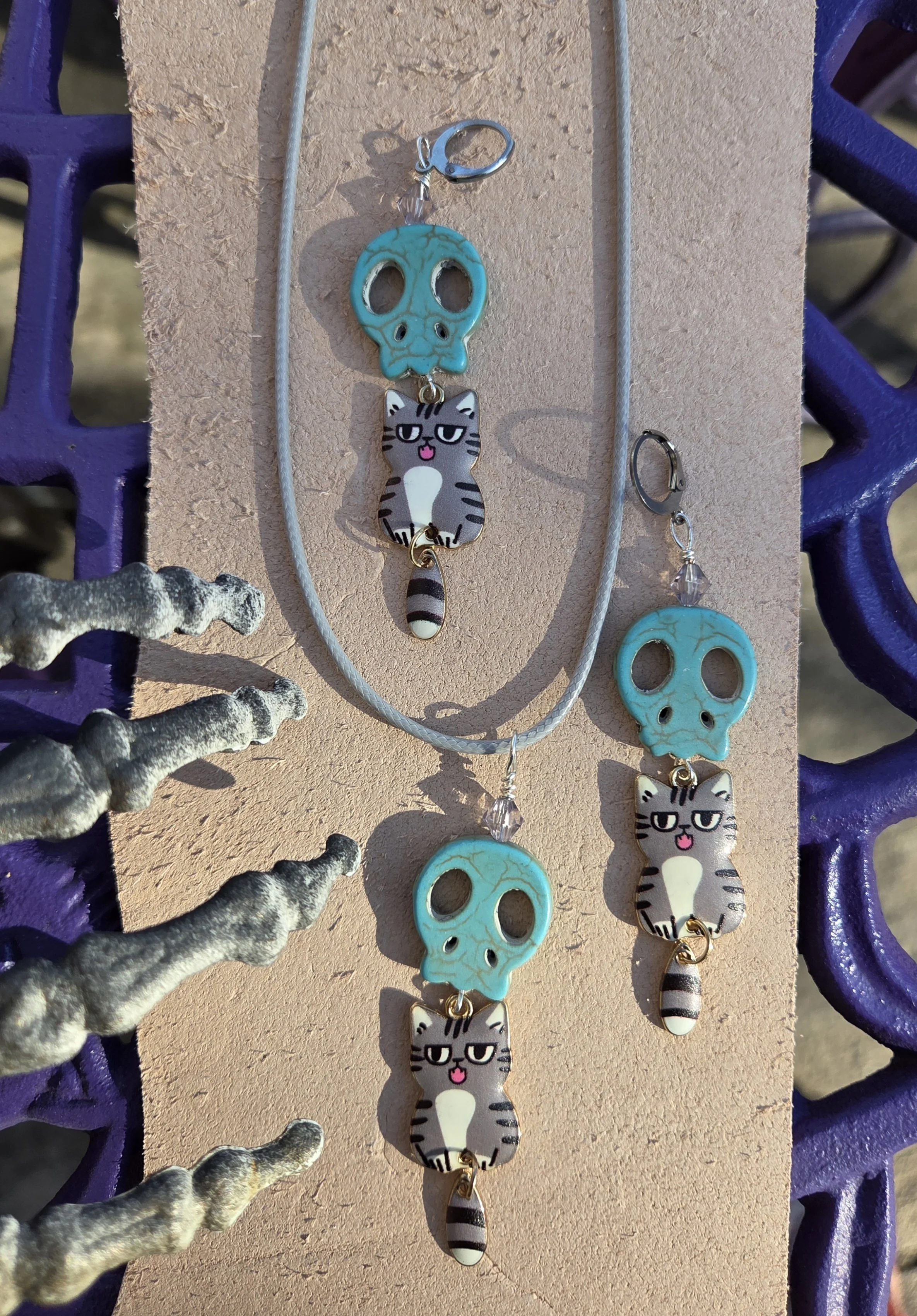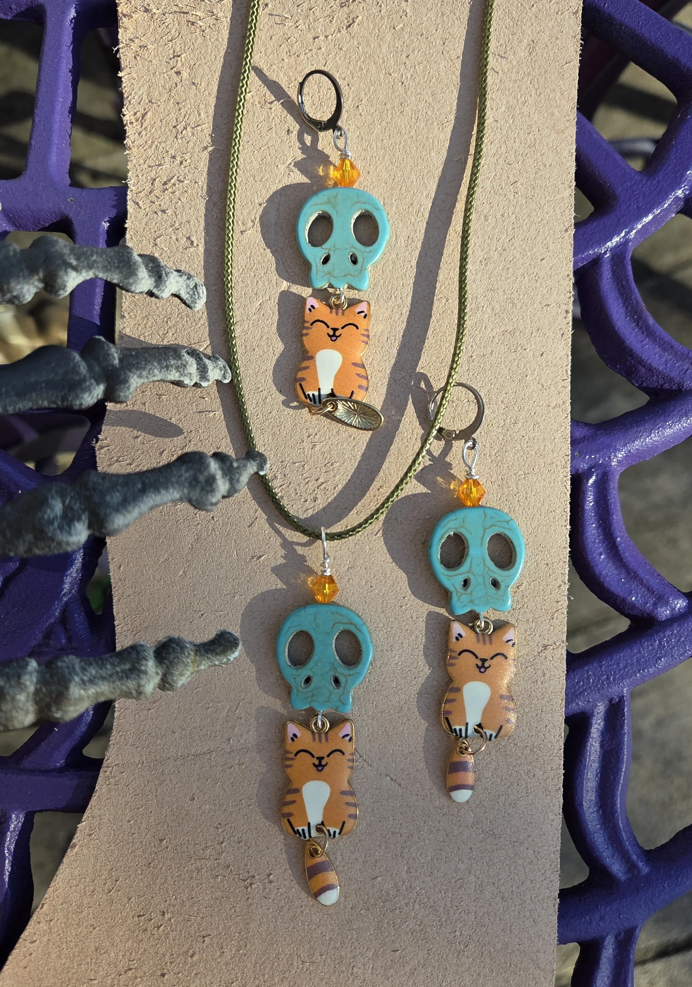 Jewelry Categories: All Rosaries Jewelry Leather Goods Original Paintings All / Dragonfly Kyanite Pendant $20.00 Cute and Spooky Cat Necklace and Earring Set $20.00 Fat Cat and Skulls Necklace and Earrings $20.00 Spooky Fat Cats Necklace and Earrings $20.00